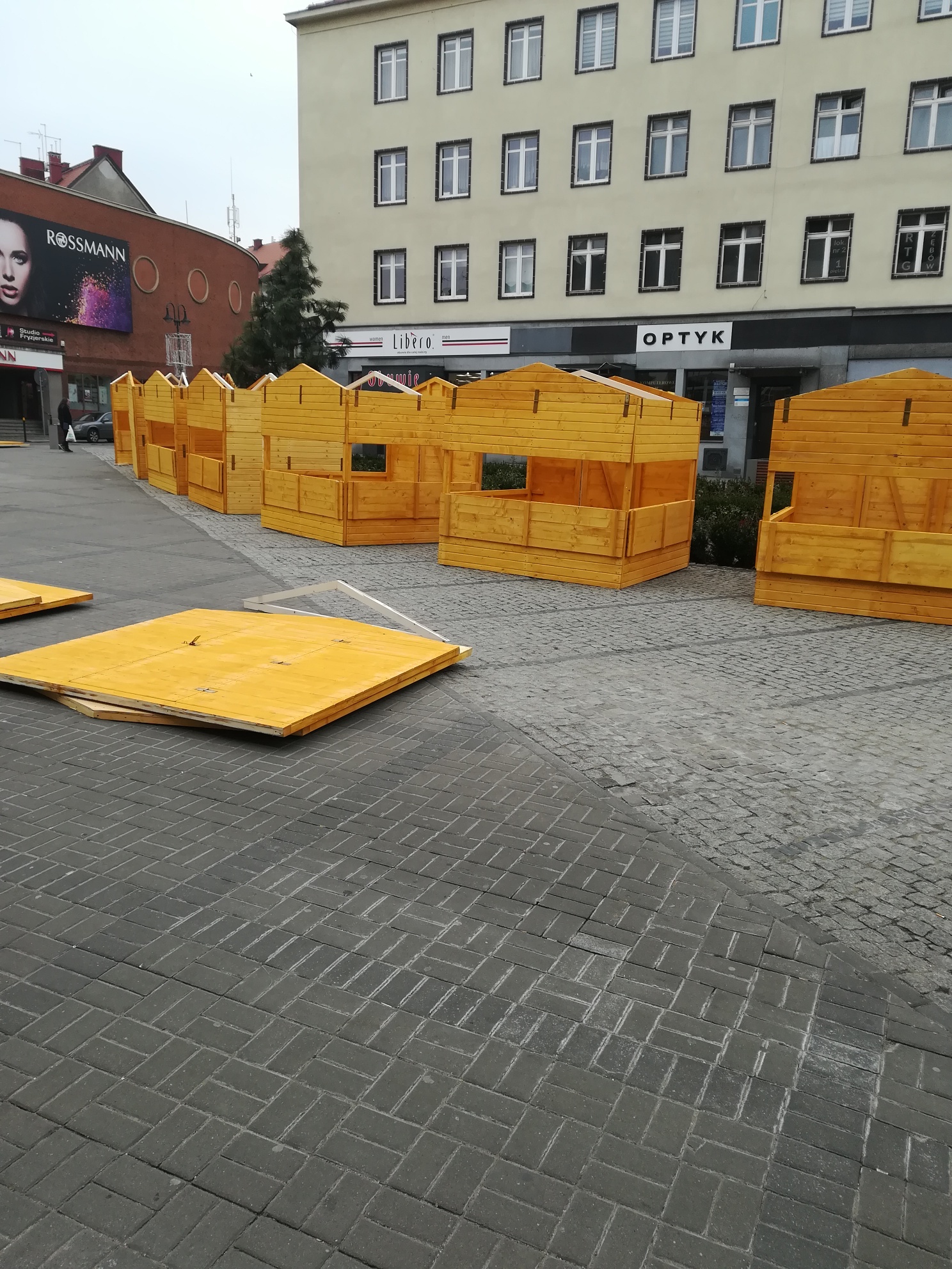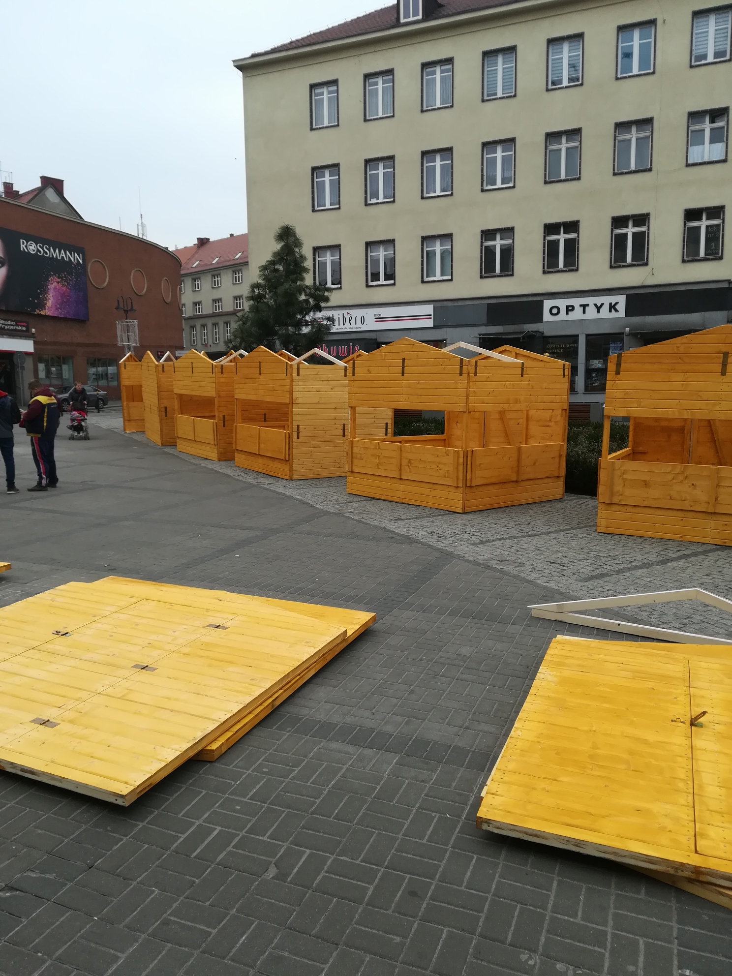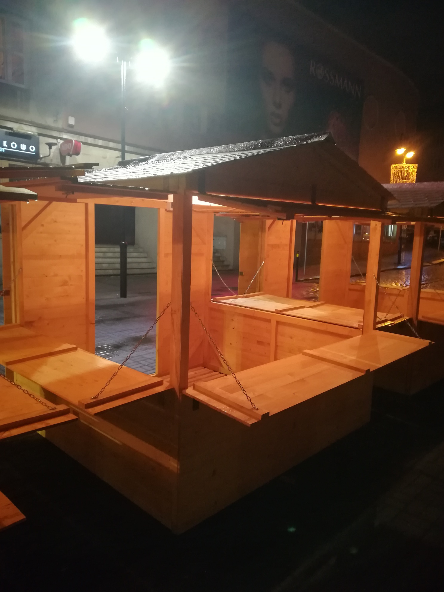 Montaż i demontaż domków handlowych na miejscu imprezy